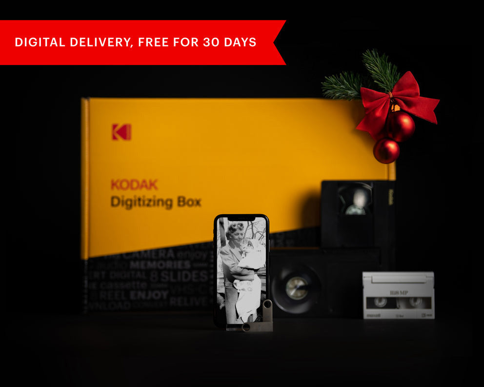 Since 1888 Kodak has continued to invent and revolutionize photography and motion pictures. That historic tradition continues with the Kodak Digitizing Box. Following in the footsteps of millions who trusted Kodak to develop their film by mail, the Kodak Digitizing Box offers mail-in digitizing for all brands of videotapes, film reels, slides, and printed photographs.
